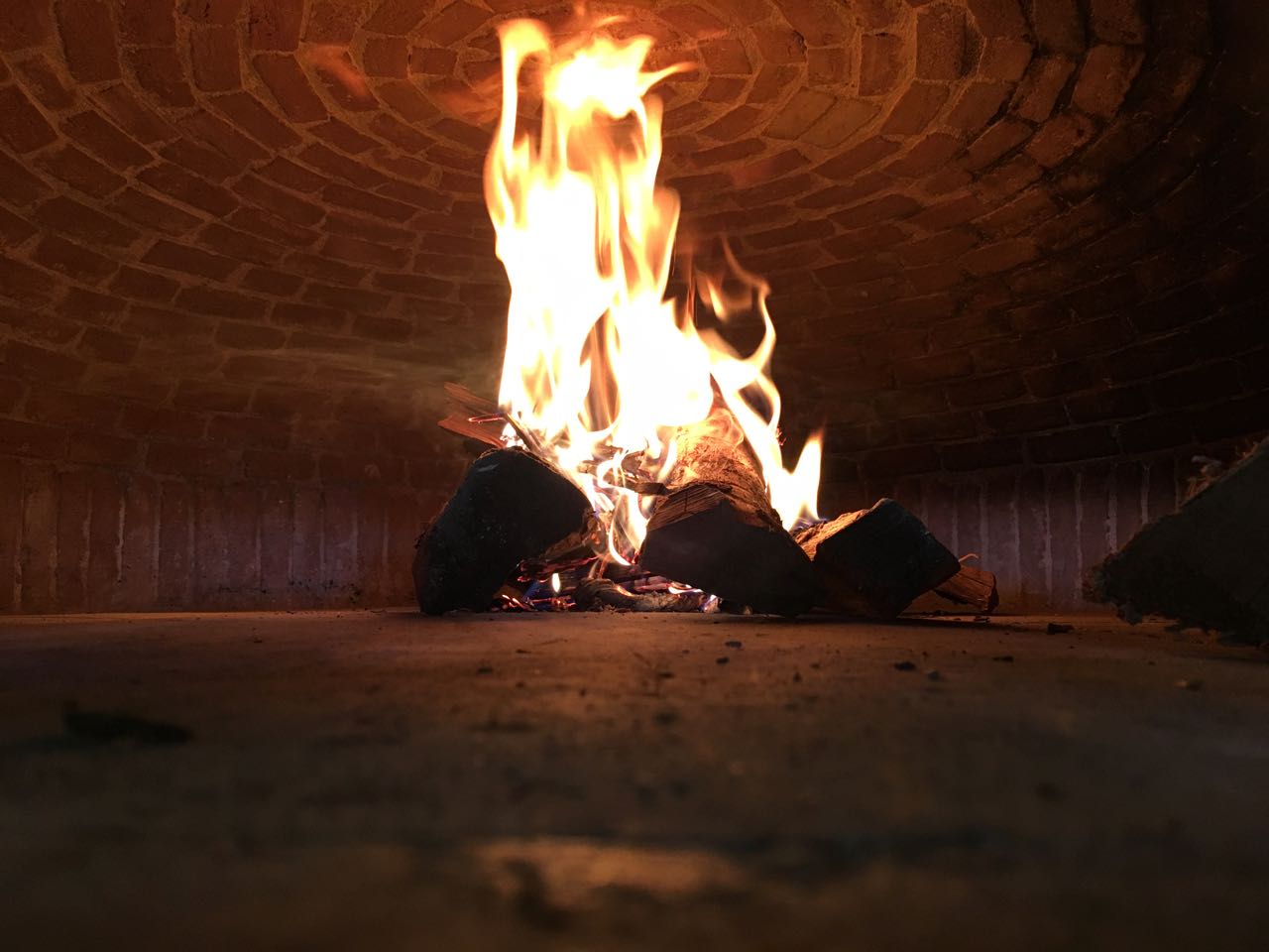 Our brick oven was made in Italy by a father and son oven building team named Artistica Salernitano. It's designed for making Neapolitan style pizzas baked at a very high temperature. The oven is 100% wood fired and the average temperature of the floor area where the pizza is baked is 800 degrees while the center of the dome ceiling is around 1,000 degrees. This temperature allows us to bake our pizzas in an average of 90 seconds.